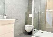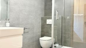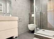 Luxusná kúpeľňa: Sprchový kút a WC v modernom dizajne.