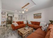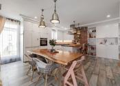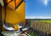 • Denná časť je tvorená vstupnou chodbou, WC, a najmä veľkorysou kuchyňou s jedálenským kútom, ktorá plynulo prechádza do obývacej izby s výstupom na hlavnú terasu. Na tejto terase, vybavenej markízou, si môžete vychutnávať rannú kávu i večery so západom slnka.