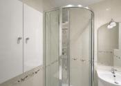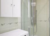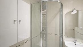 Murované jadro so sprchovacím kútom, umývadlo so skrinkou, oddelené WC.