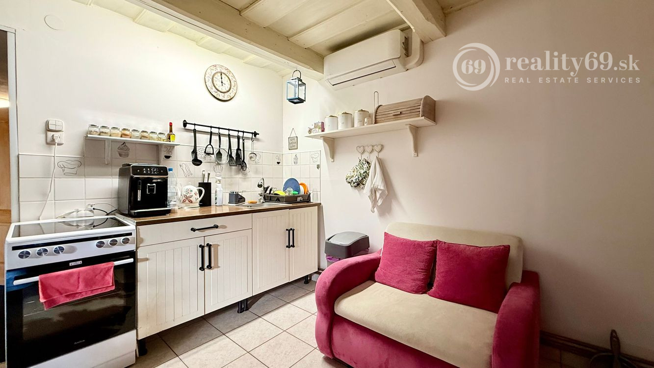 Na prízemí sa nachádza priestranná obývačka, kuchyňa s jedálenským kútom, chodba a nová kúpeľňa, somstatné WC.