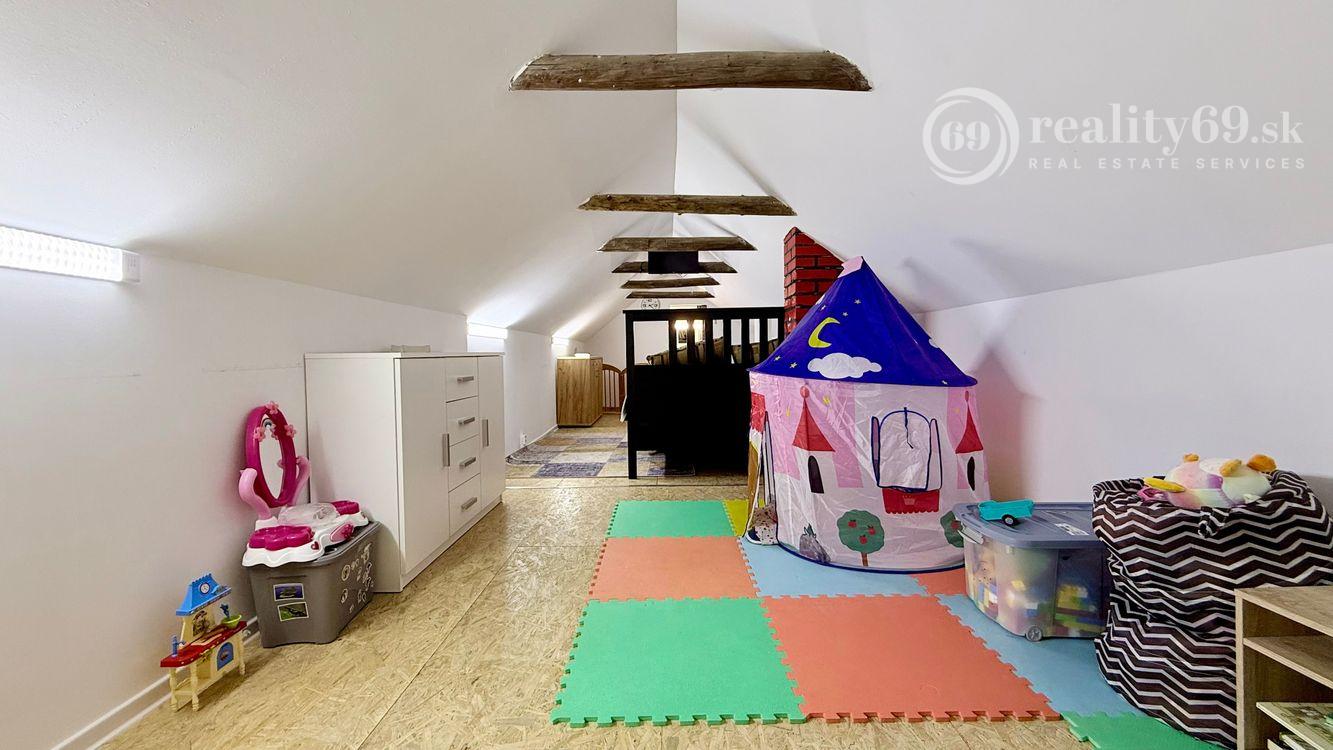Na poschodí je ďalšia kúpeľňa a obytný priestor ideálny na spanie pre celú rodinu.