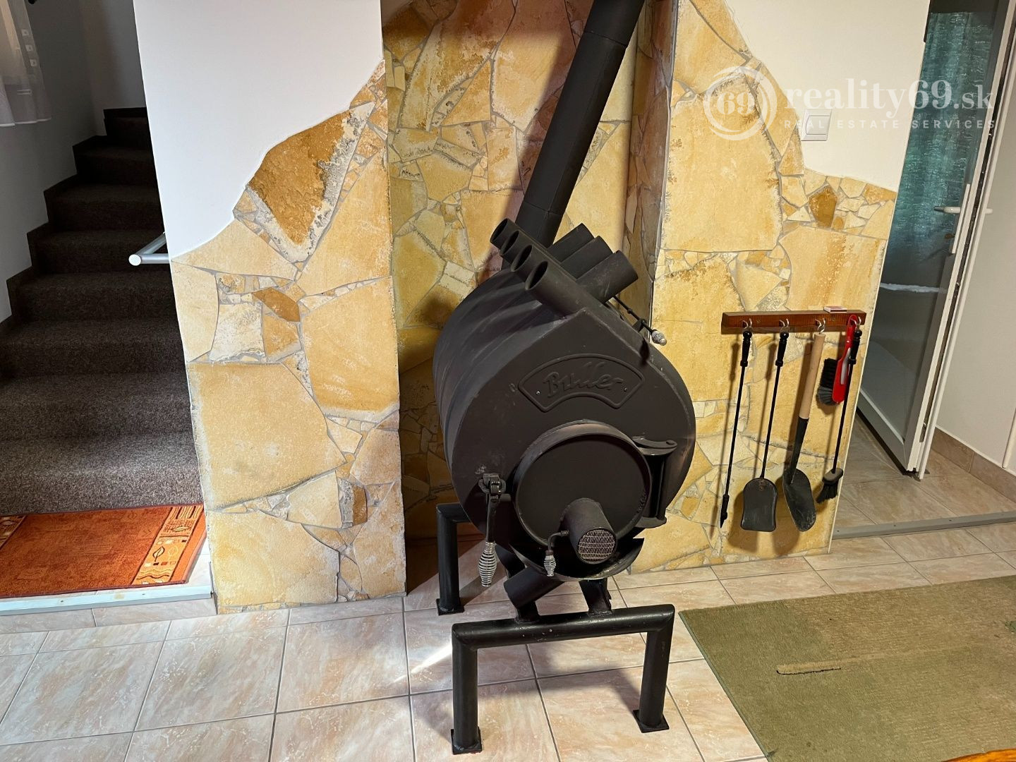 Vykurovanie elektrickými panelmi a kachľami na drevo. Teplá voda je zabezpečená elektrickým bojlerom.
