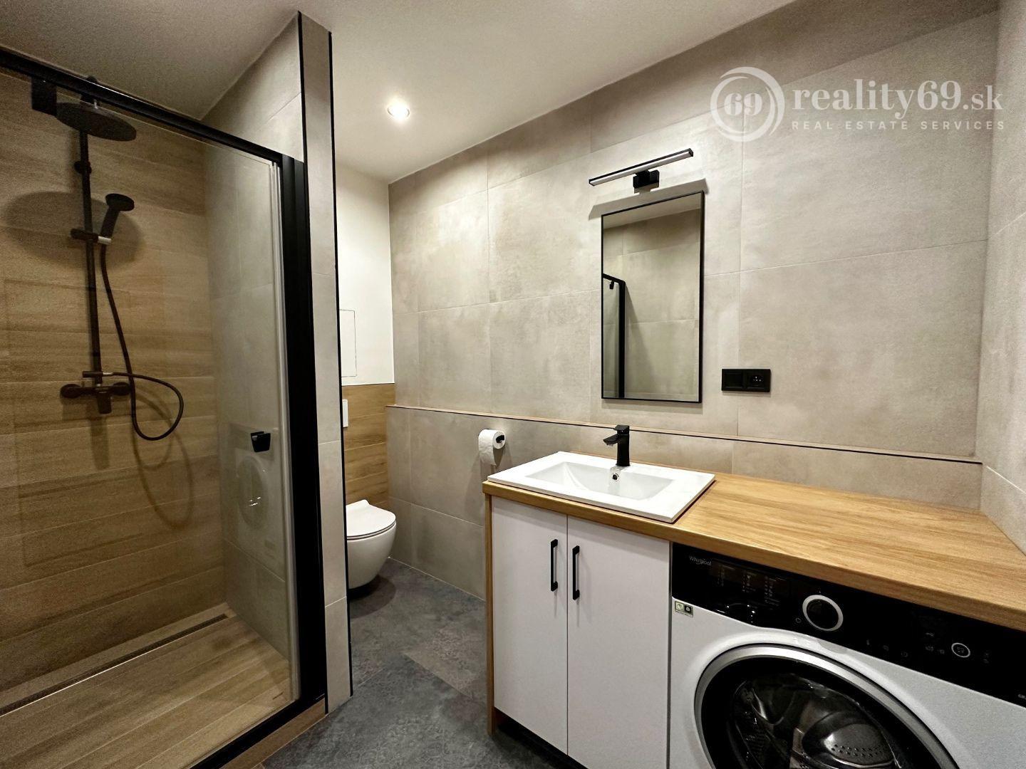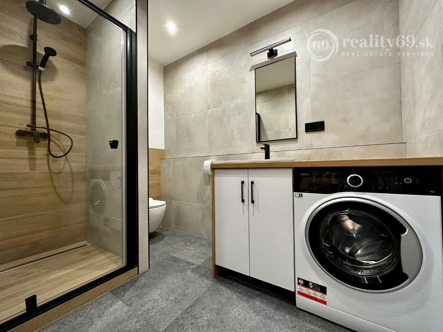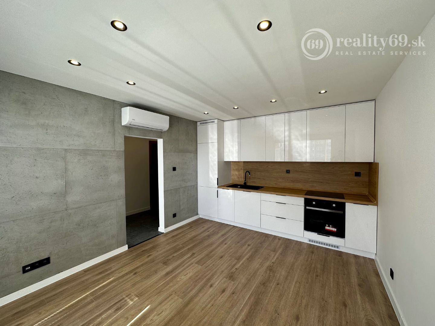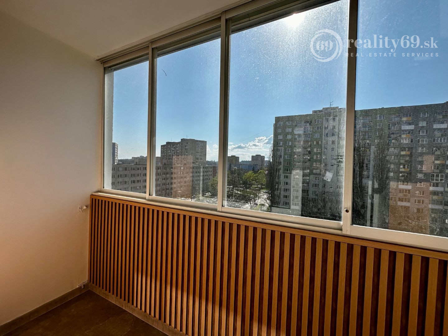 Výmera 35m2, byt má zasklenú lodžiu, klimatizáciu, úložné priestory na chodbe a pivnicu. Nová kompletná rekonštrukcia a realizácia prostredníctvom Architekta. Nové rozvody vody, elektriny, odpadu, radiátory. Nachádza sa na 7/13 poschodí, top lokalita. Podlaha: plávajúca, na chodbe a v kúpeľni dlažba. Steny: nové sadrové stierky. Okná: v izbách plastové okná so žalúziami. V obývacej izbe omietka s betónovým efektom. Úsporné bodové svietidlá. Obložkové zárubne a interiérové dvere. Vybavenie kúpeľne: priestranný sprchovací kút, umývadlo so skrinkou, zrkadlo, práčka s parným módom, LED osvetlenie, WC - Geberit.