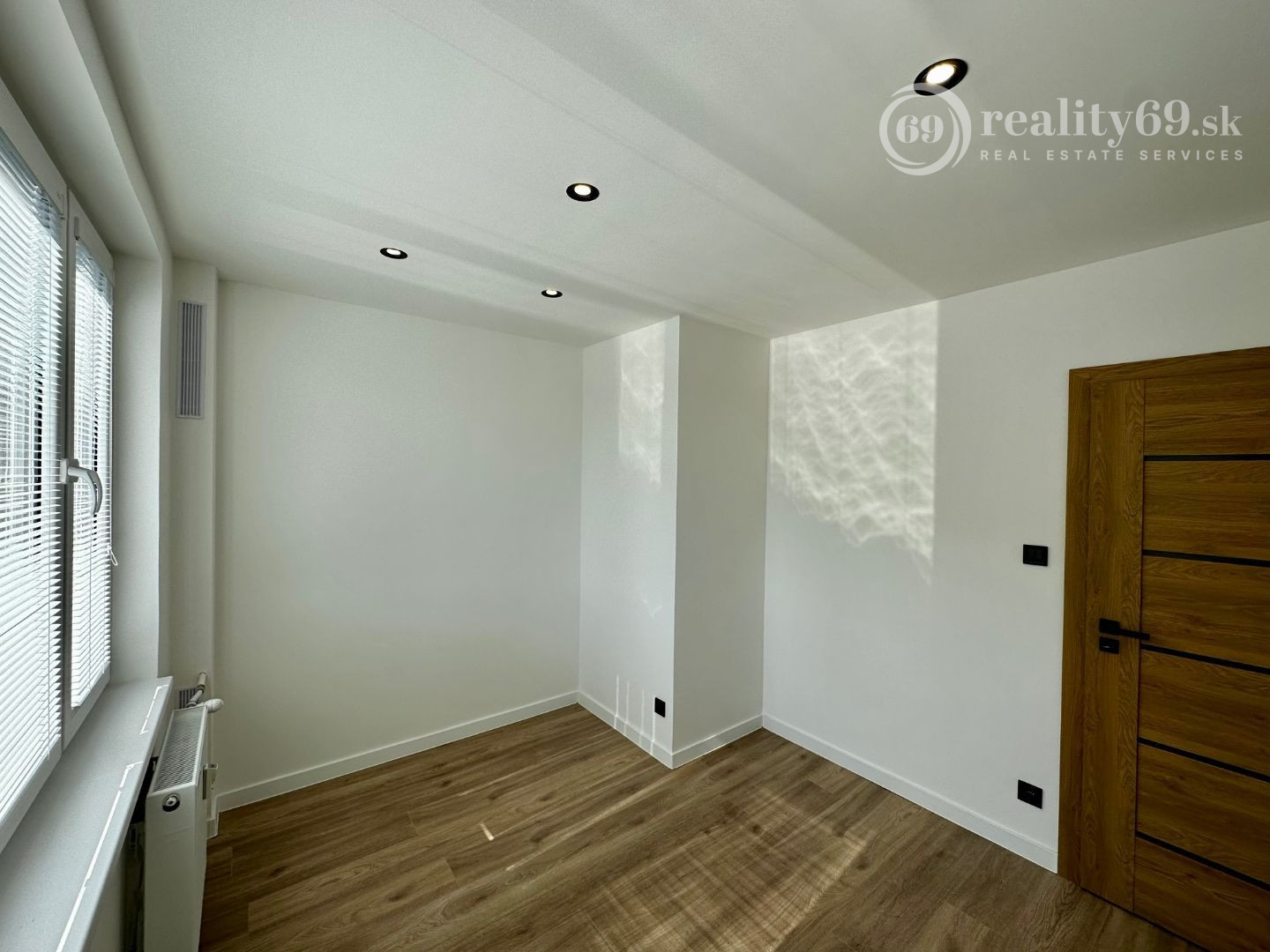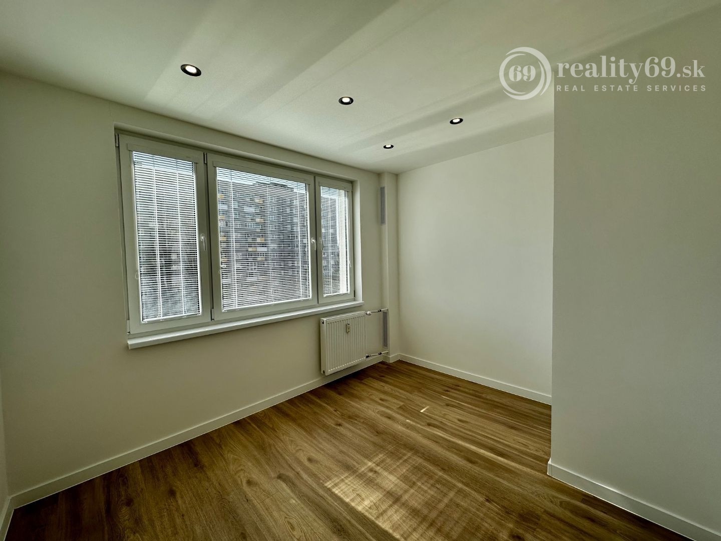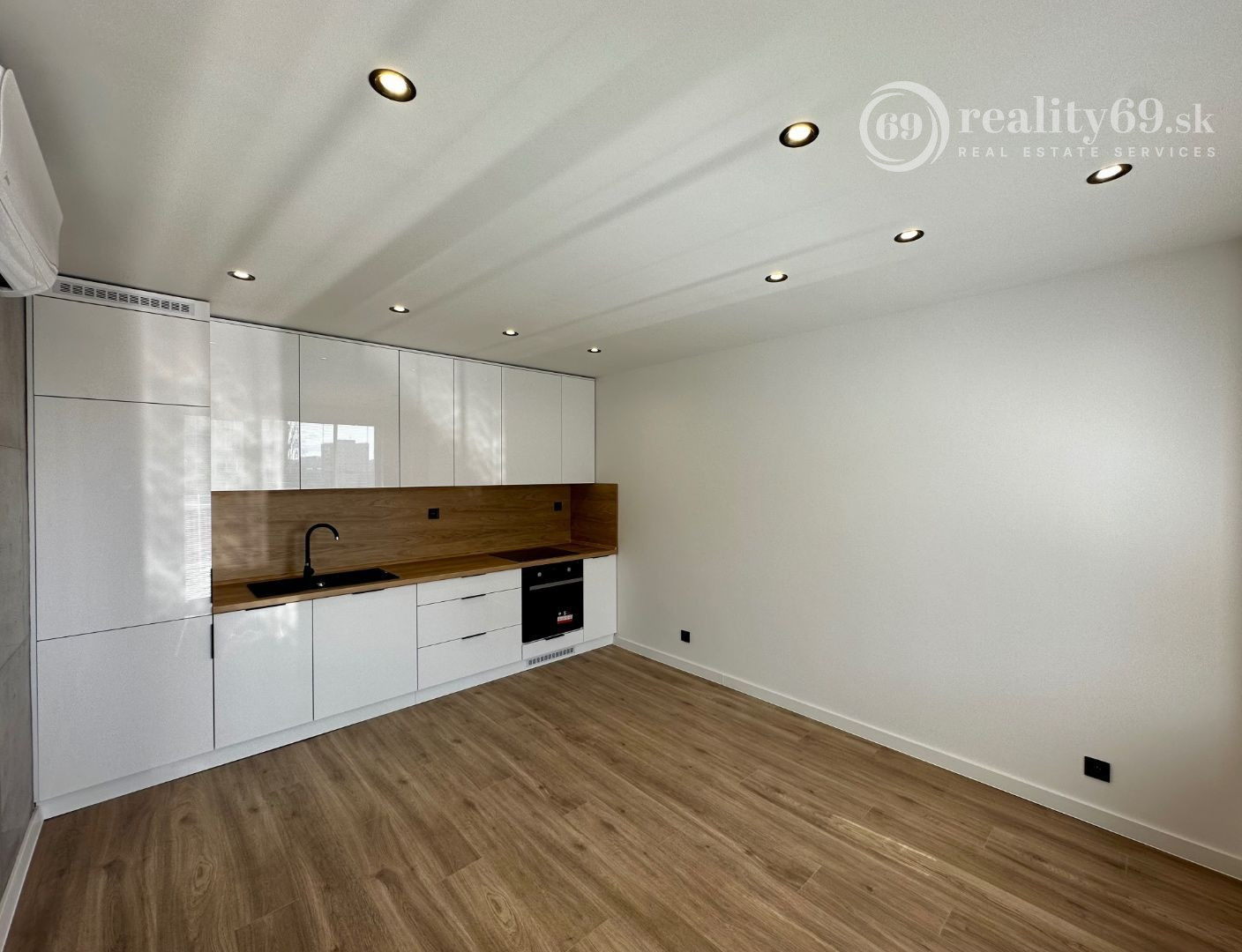 Vybavenie kuchyne: kuchynská linka so vstavanými spotrebičmi, umývačka riadu, chladnička s mrazničkou, varná doska indukcia, multifunkčná rúra, mikrovlnná rúra, značkový digestor, drez s batériou, samostatná zostava úložných priestorov. Kúrenie vysoko úspornými a výkonnými hliníkovými radiátormi + klimatizácia. Nový silnejší prívod elektriny 25 A. Stav objektu: kompletná rekonštrukcia v byte sa nebývalo. Obytný dom je po celkovej rekonštrukcii, zateplený, nová strecha, nové inteligentné výťahy. Výhody: centrum mesta, slnečný, pekný výhľad, obchody, škola, škôlka, nemocnica, zastávka autobusu, zateplený bytový dom, OC AUPARK.