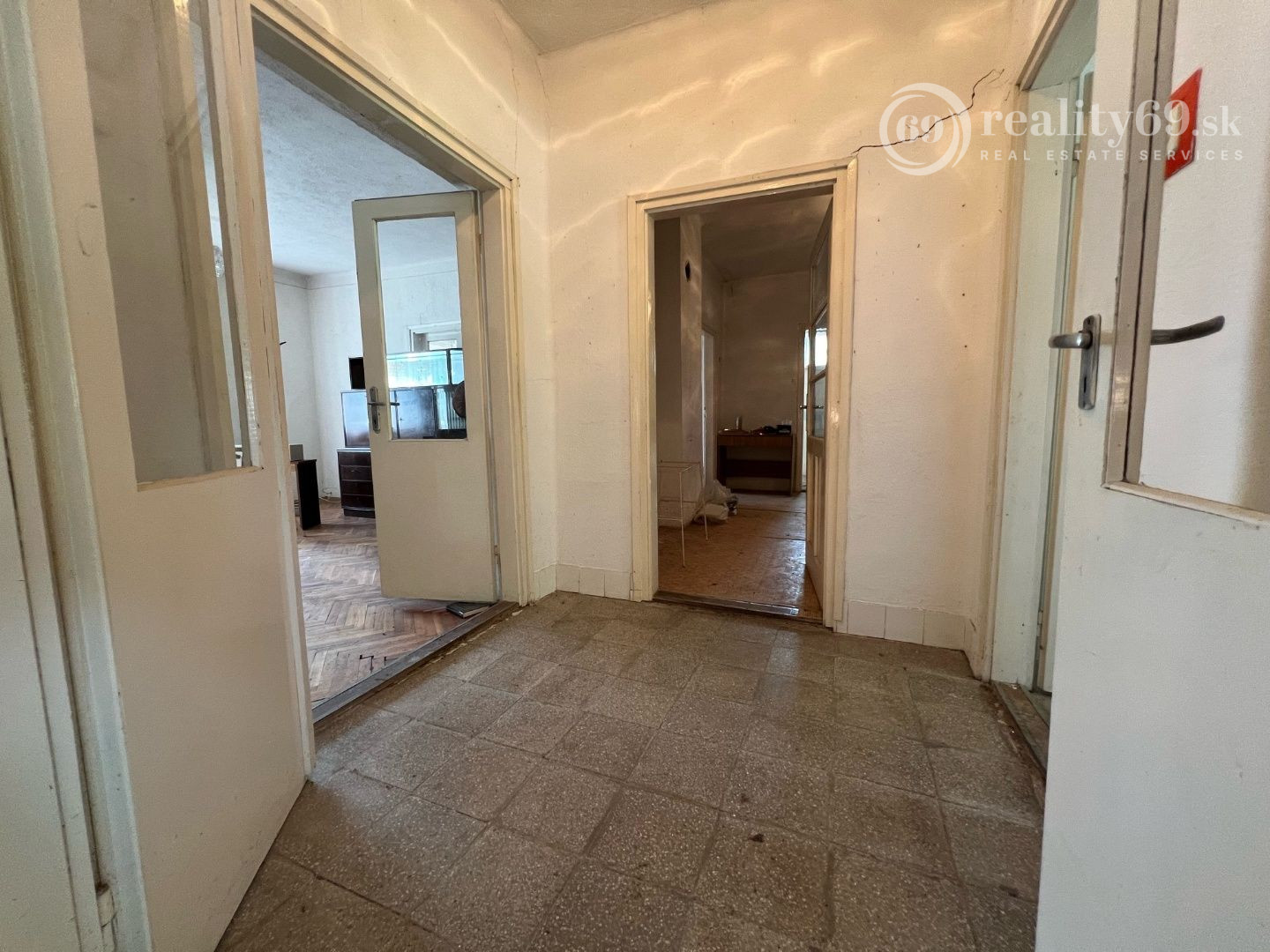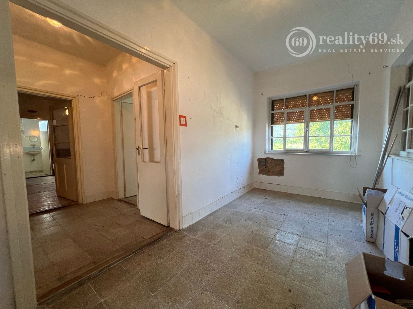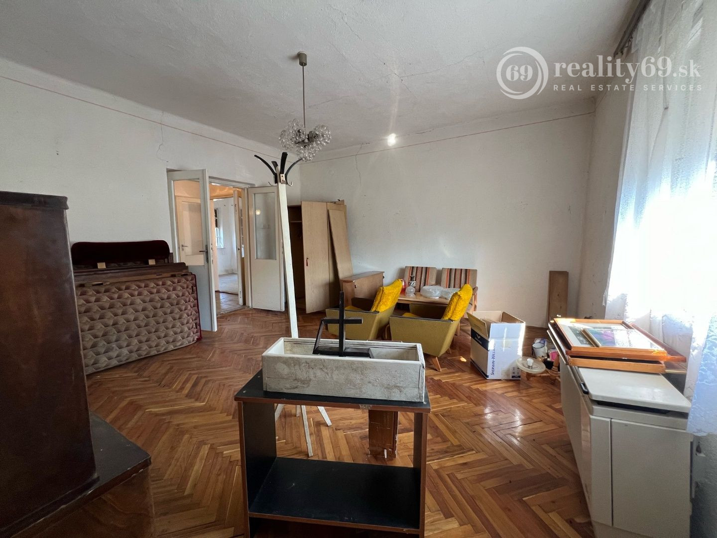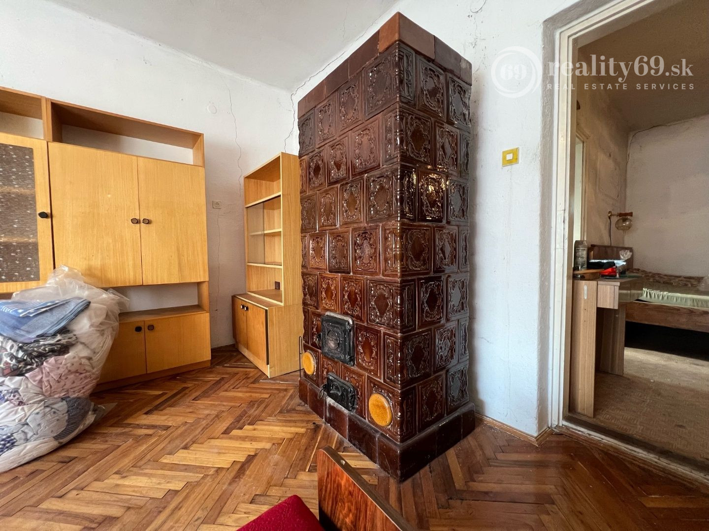 Dispozícia: vstupná chodba, predsieň, kuchyňa, obývacia izba, 2 spálne, kúpeľňa, komora s výstupom na povalu (slúži ako odkladací priestor), čiastočne podpivničený.