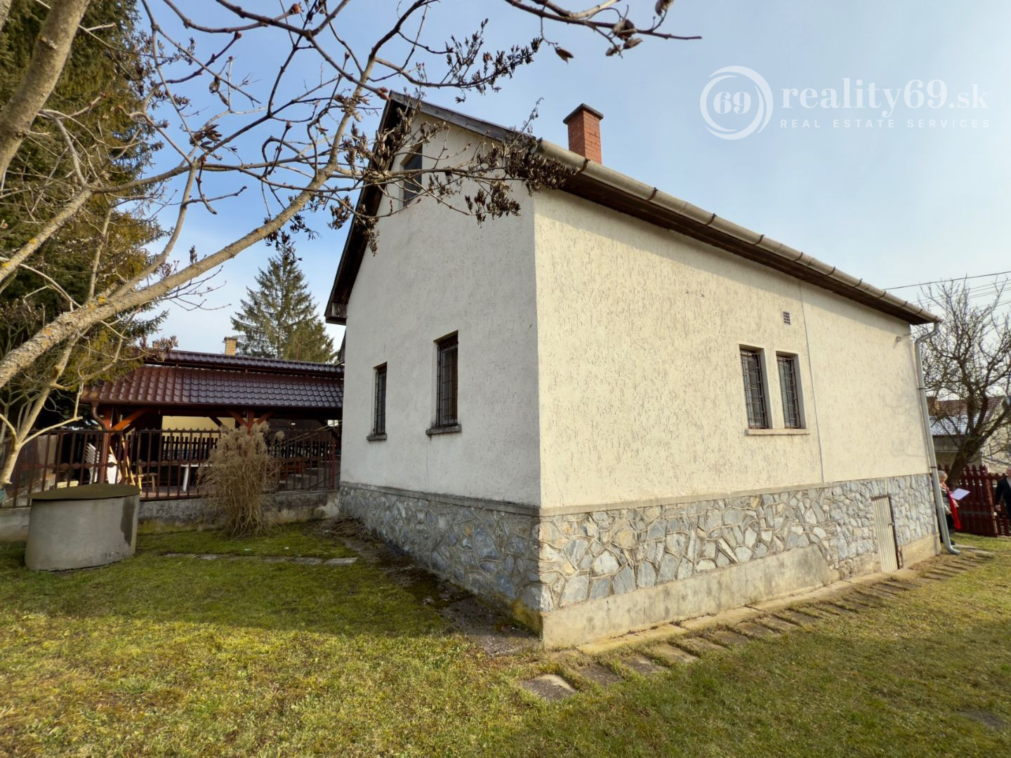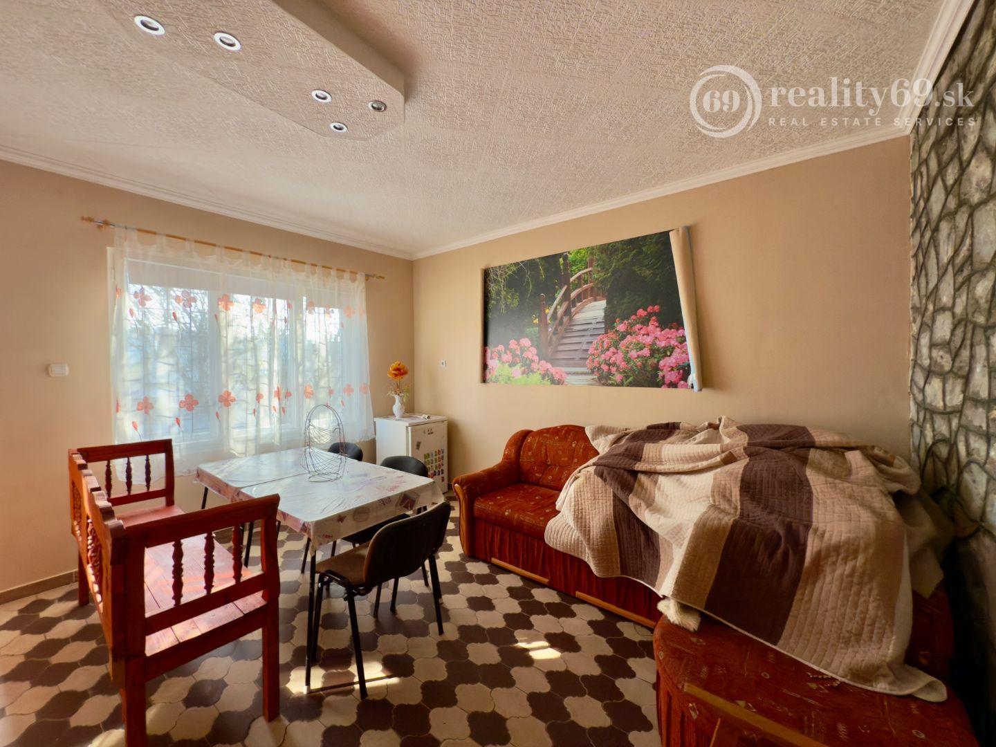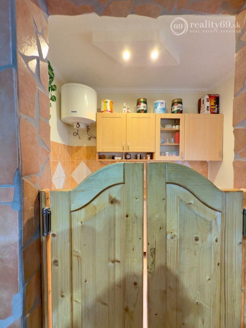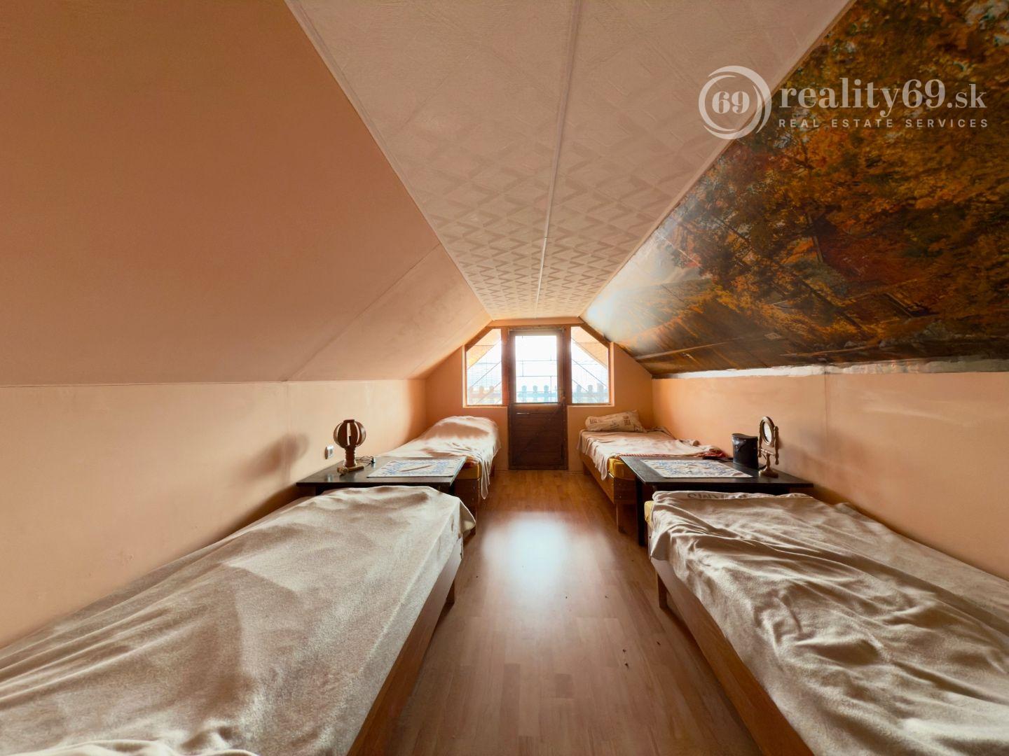 Murovaná chata v perfektnom stave s dvoma izbami, kúpeľňou, WC a kuchyňou na 1. poschodí.