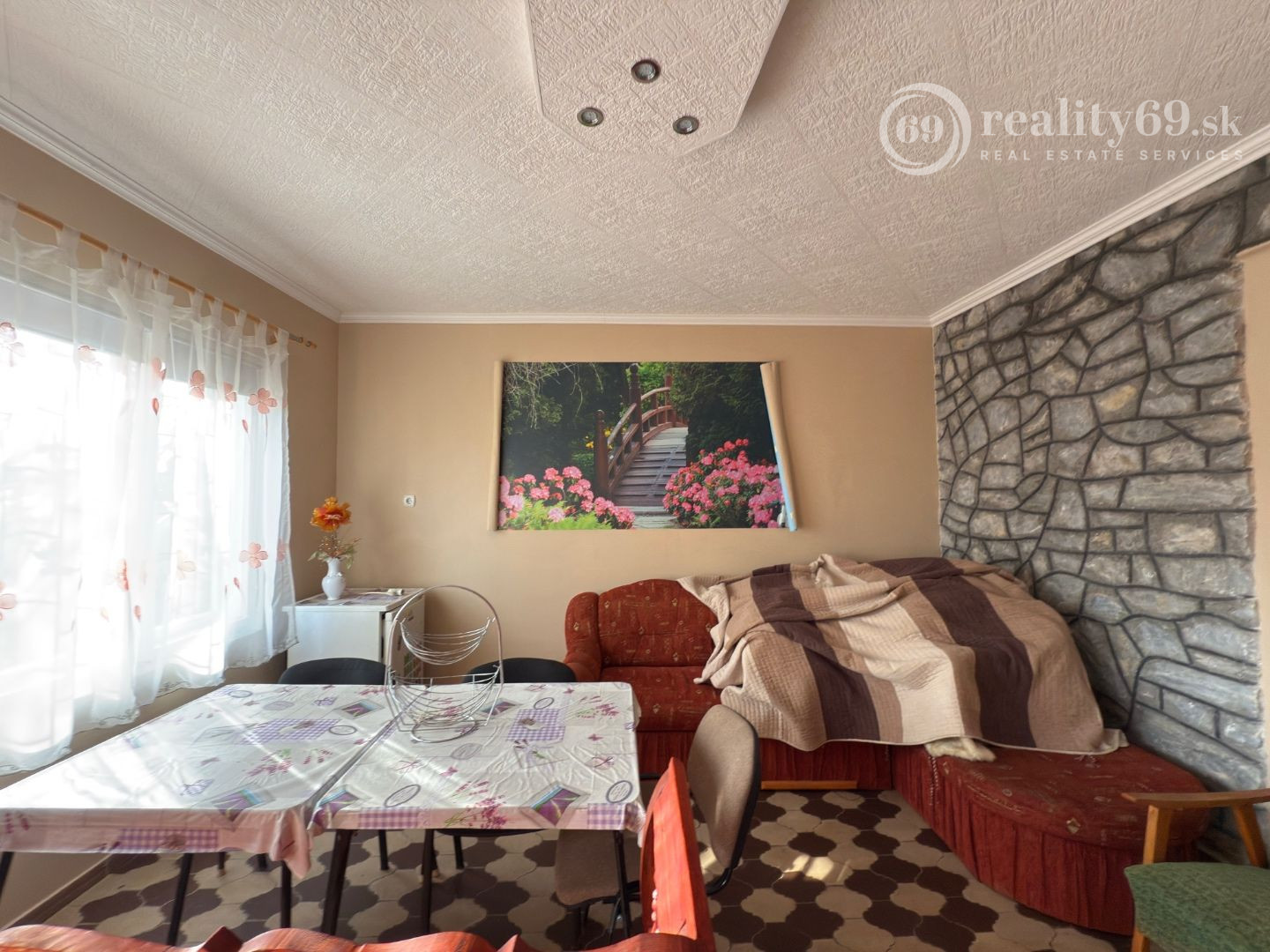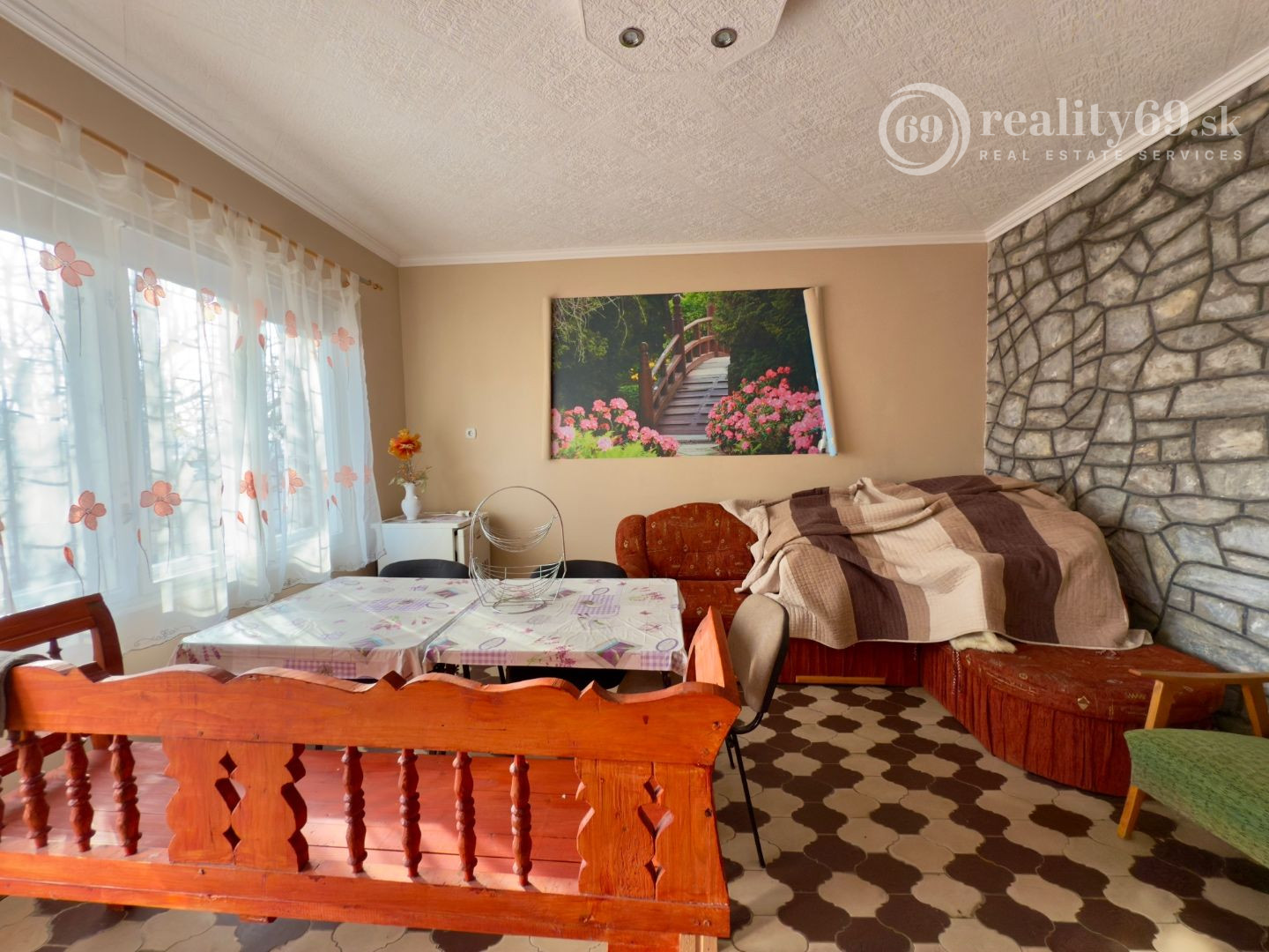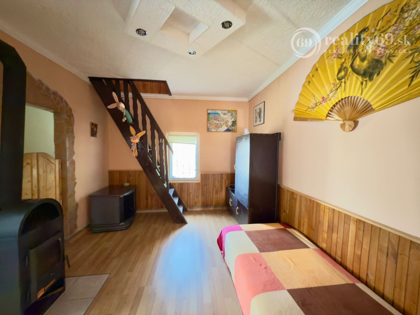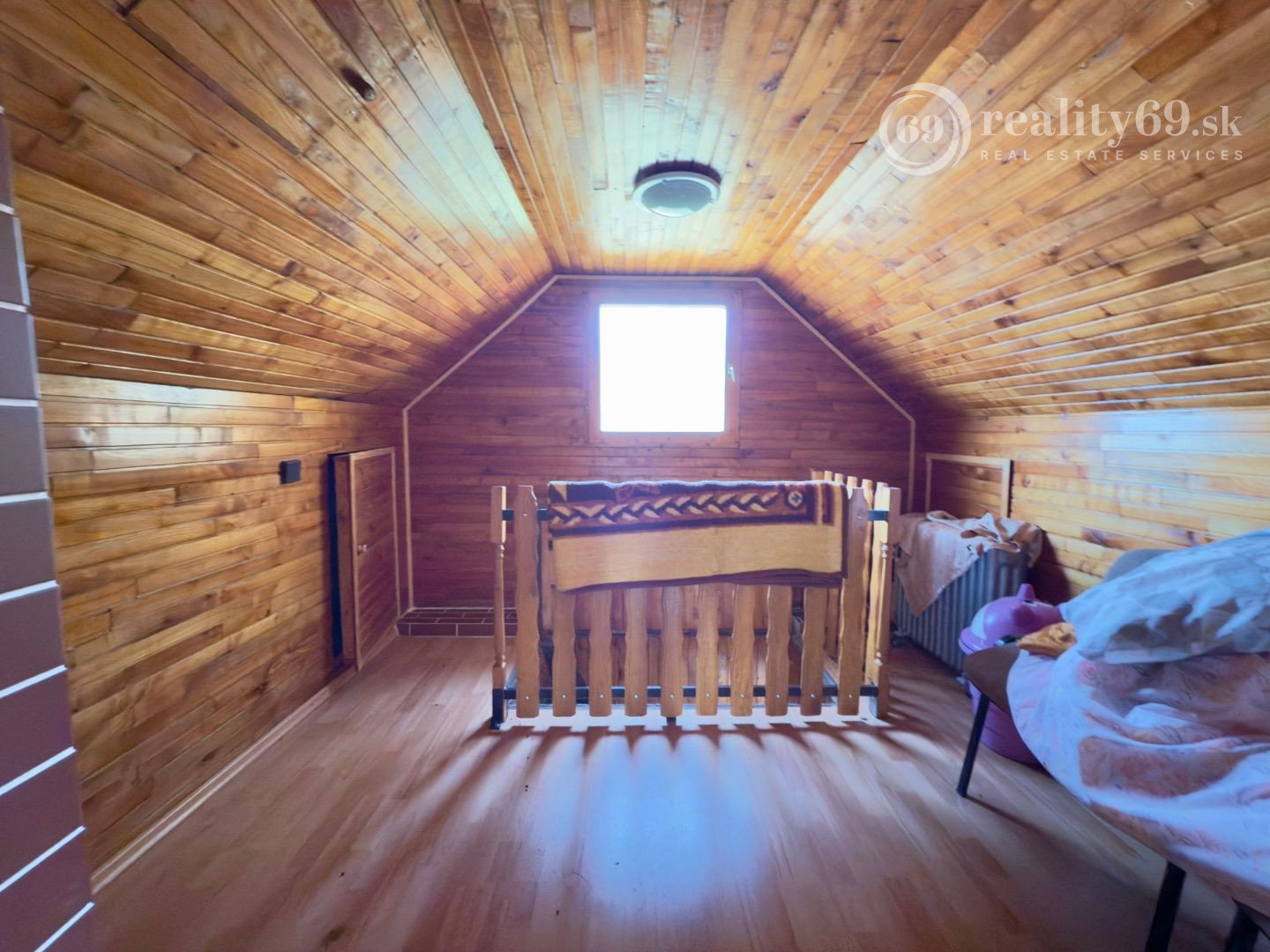 Murovaná chata v perfektnom stave s dvoma izbami, kúpeľňou, WC a kuchyňou na 1. poschodí.