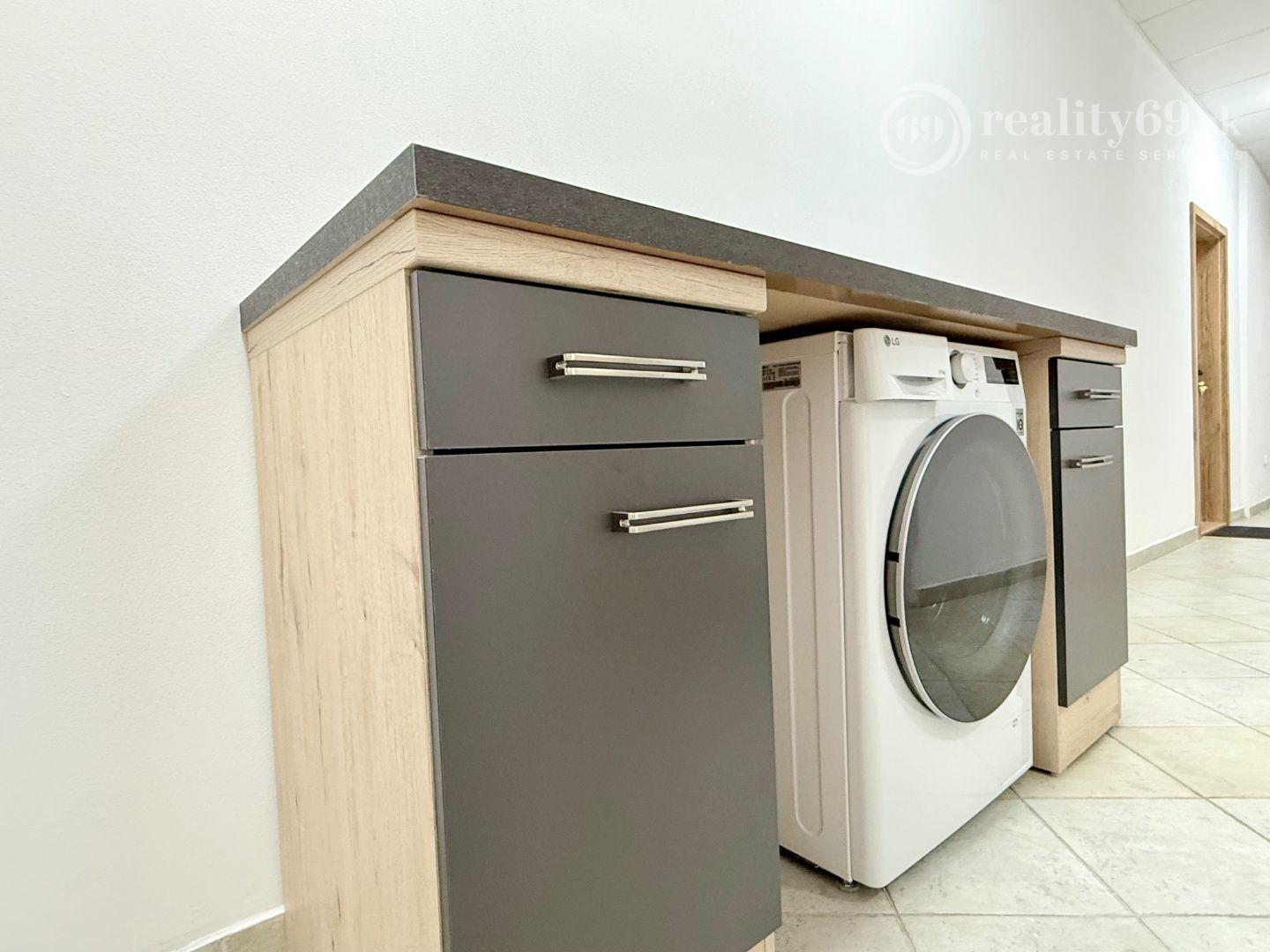 Praktické odkladacie priestory: Spoločné odkladacie priestory na chodbe a automatická práčka so sušičkou pre Vaše pohodlie.
