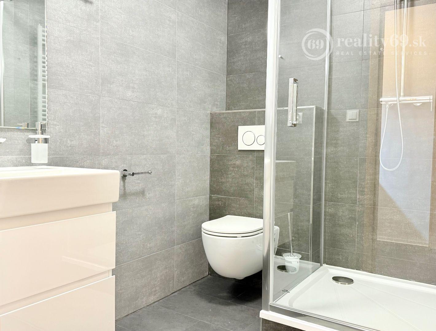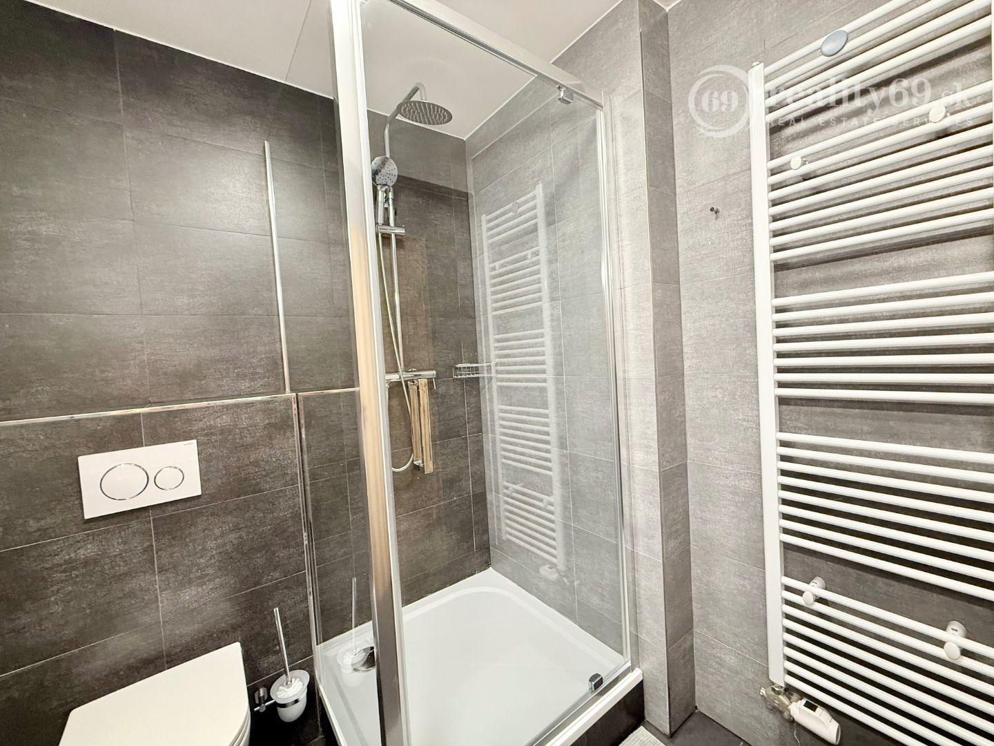 Luxusná kúpeľňa: Sprchový kút a WC v modernom dizajne.