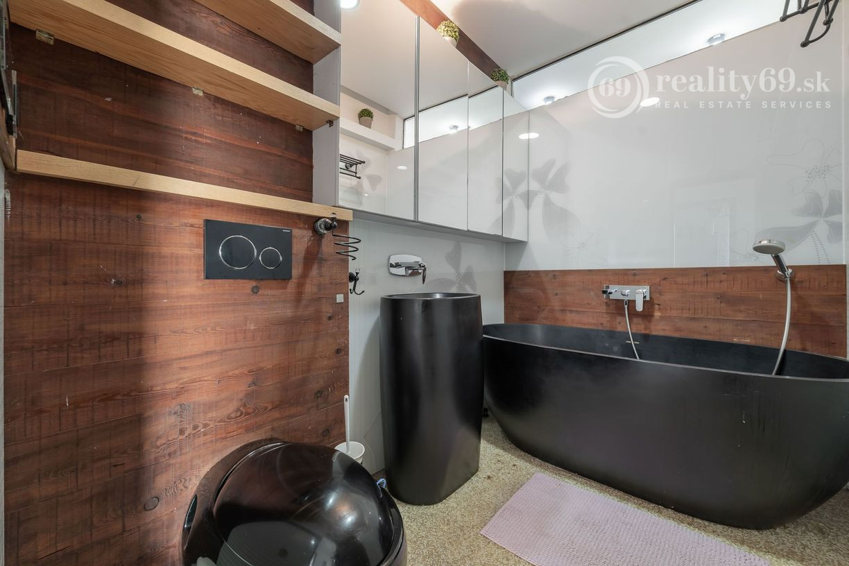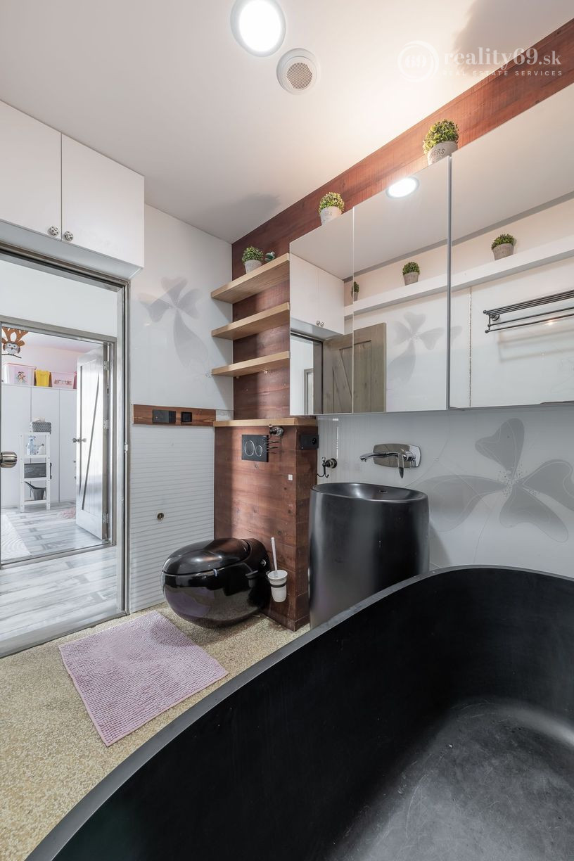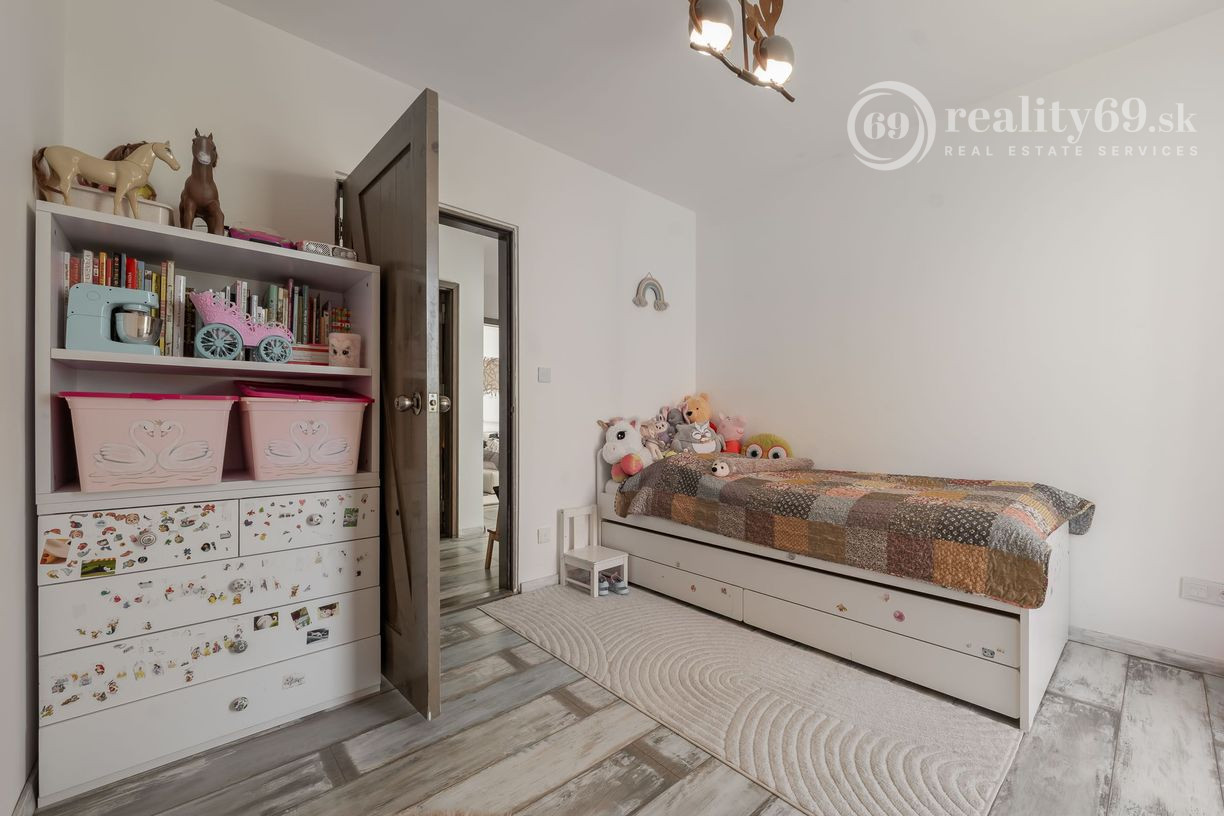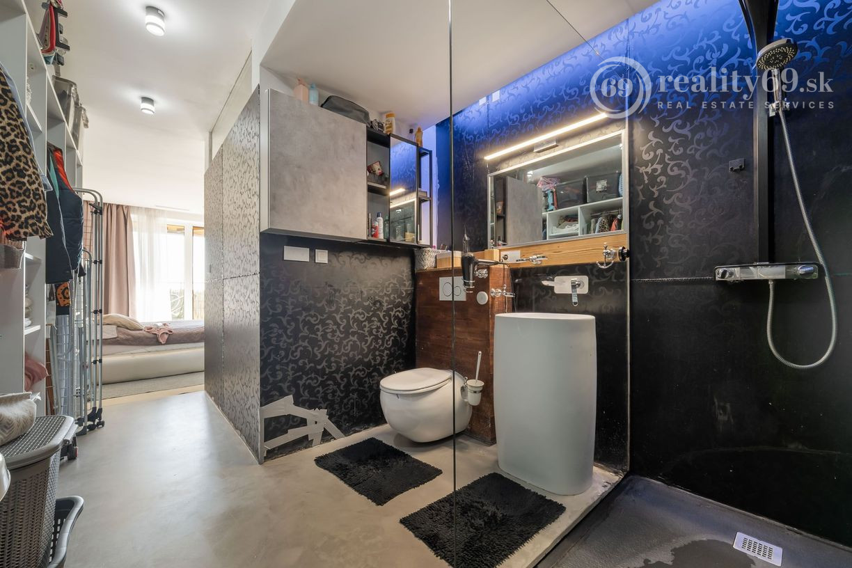 • Nočná časť zahŕňa dve samostatné izby, kúpeľňu s WC, a hlavnú spálňu, ktorá disponuje vlastnou kúpeľňou a šatníkom.