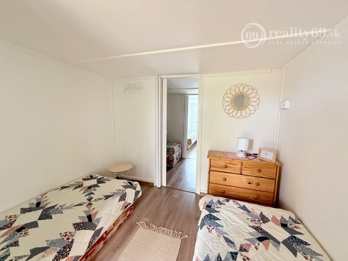 Na prvom poschodí nájdete tri útulné izby, modernú kúpeľňu s WC, plne vybavenú kuchyňu s komorou a priestrannú zastrešenú terasu s posedením a grilom – ideálnu na večerné posedenia s priateľmi a rodinou.