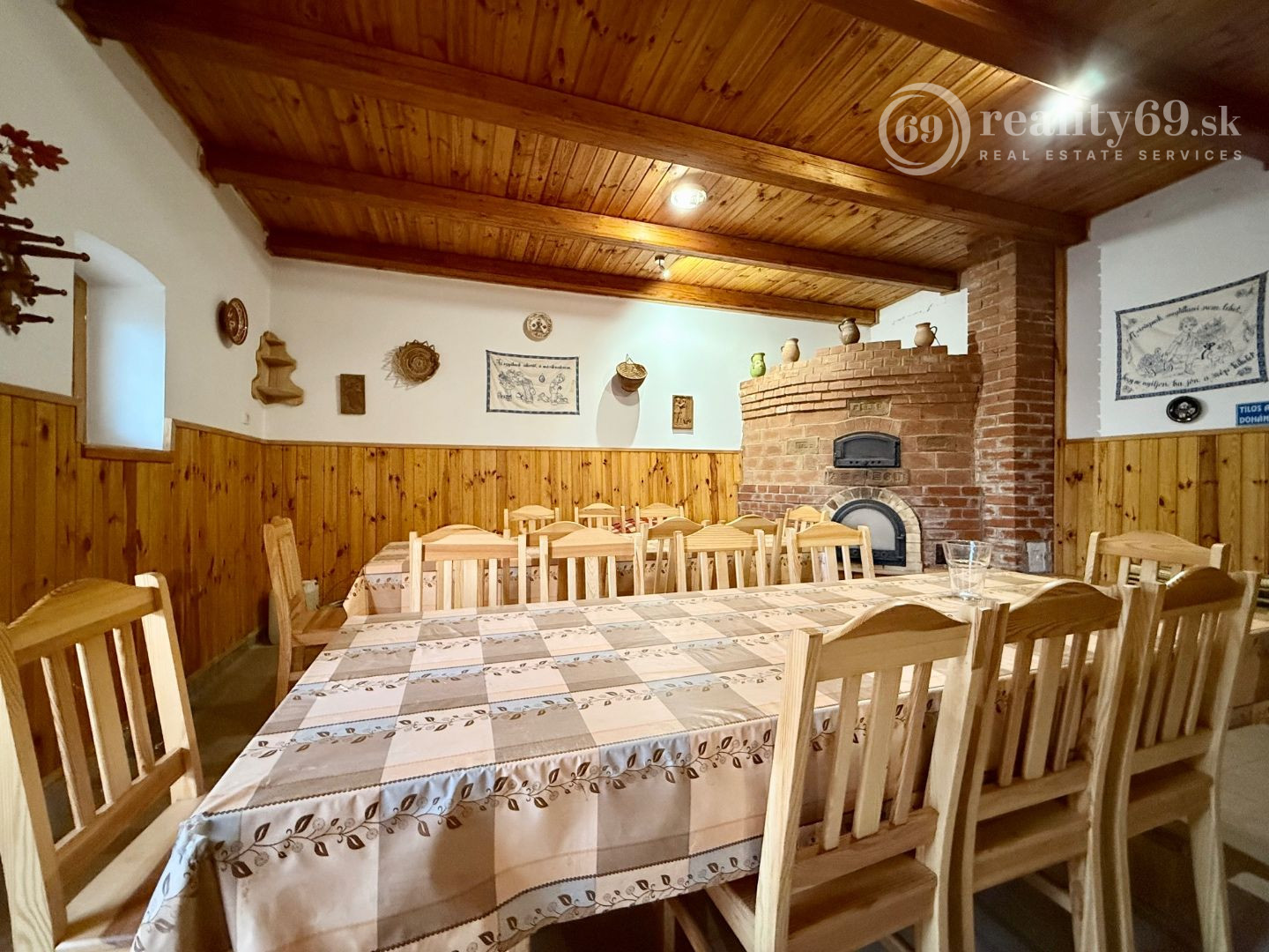 Spoločenský priestor: Penzión disponuje veľkým spoločenským priestorom, ideálnym pre spoločné stretnutia a relaxáciu hostí, atmosféru dotvára murovaná pec.