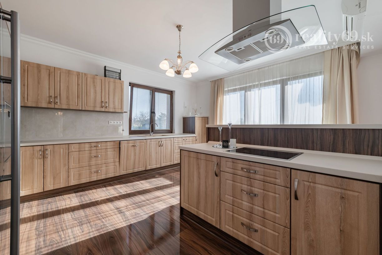 • Kuchynská linka vybavená kvalitnými modernými spotrebičmi: chladnička, umývačka riadu, multifunkčná rúra, varná doska a digestor