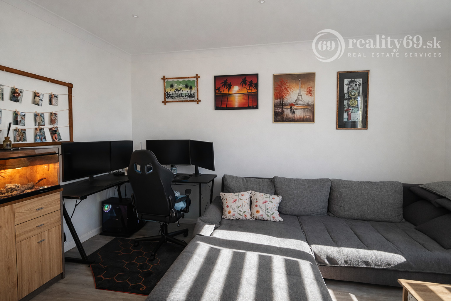 Dispozične je byt veľmi dobre riešený – pozostáva z troch samostatných izieb, ktoré zaručujú dostatok súkromia.