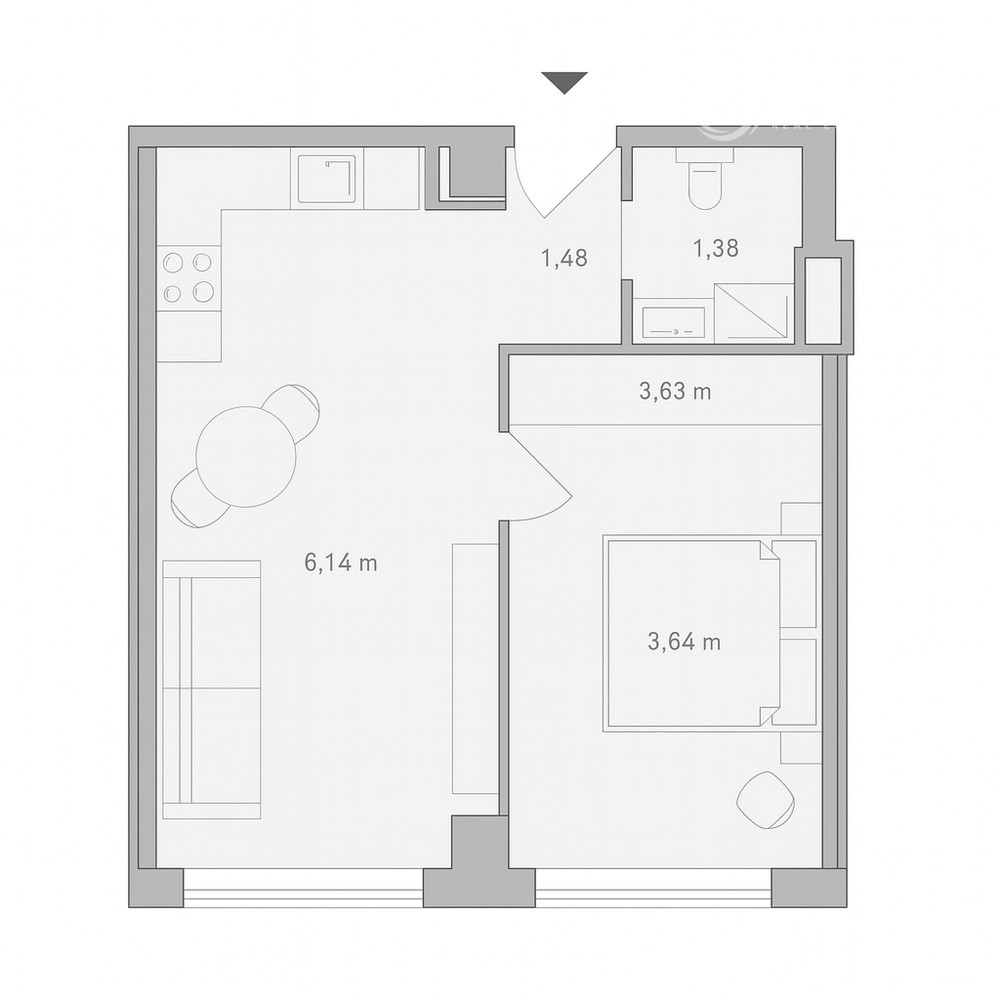 • dispozícia: 2-izbový byt